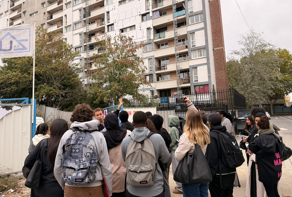 Au Blanc-Mesnil (93), Damien Boucher a pour sa part guidé son groupe au cœur de la cité Germain Dorel, classée monument historique. Autour de la résidence 212, les étudiants ont pu découvrir la vie sociale et économique du quartier, visiter le centre social,admirer les fresques murales ou encore échanger avec les gardiennes de CDC Habitat.