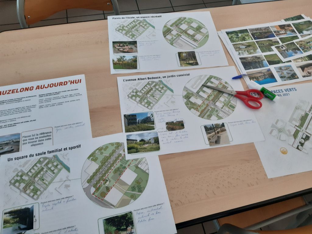 Là aussi, les participants ont pu s’exprimer sur leurs idées, leurs envies, leurs souhaits pour « habiller » l’avenue Albert Bedouce, le square ou bien encore le parvis de l’école.