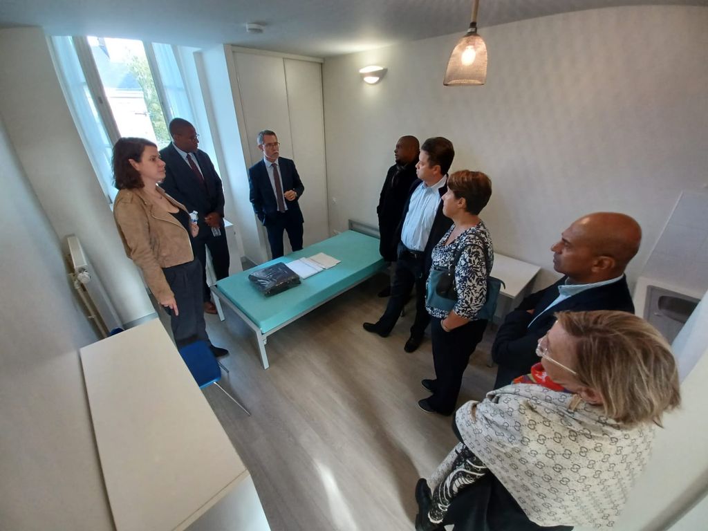 Le groupe d’une quinzaine de personnes a commencé par se rendre dans la résidence sociale Safran opérée par Adoma et qui a été l’objet récemment d’une opération de réhabilitation/construction. Elle propose aujourd’hui des logements adaptés à celles et ceux qui traversent des difficultés économiques et/ou d’insertion (salarié(e)s ou sans emploi, personnes seuls ou familles) et accueille, par ailleurs, les nouveaux locaux de la Direction Territoriale Pays de Loire – Bretagne.